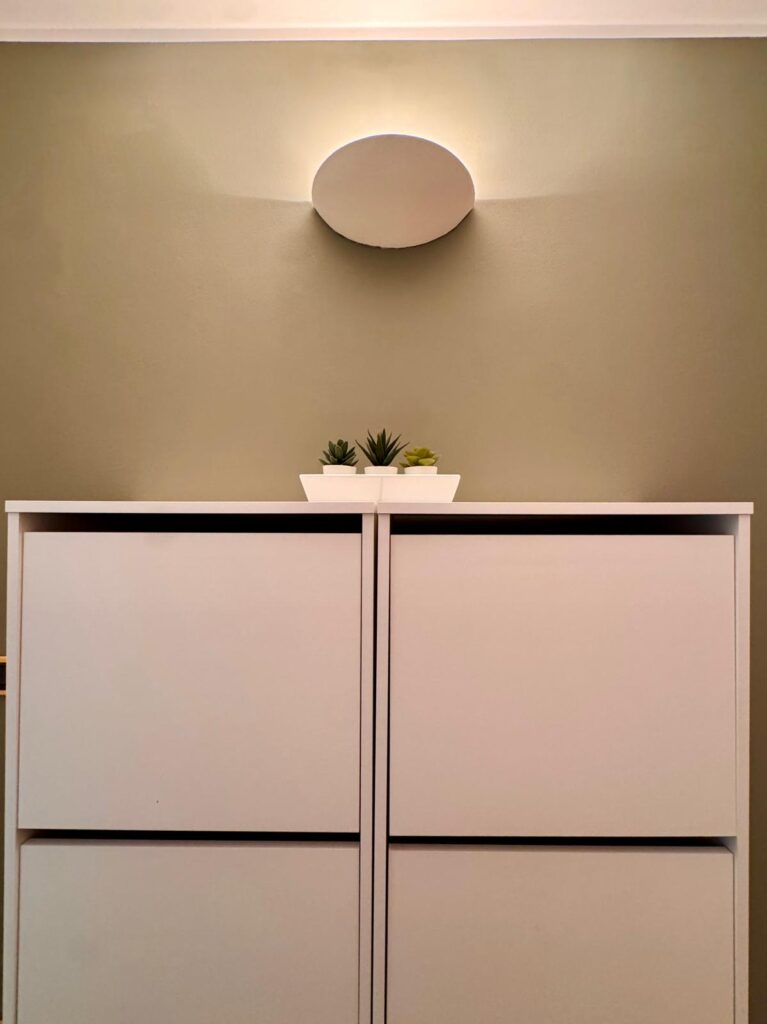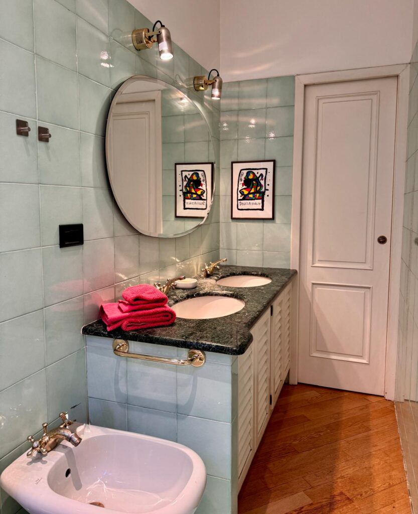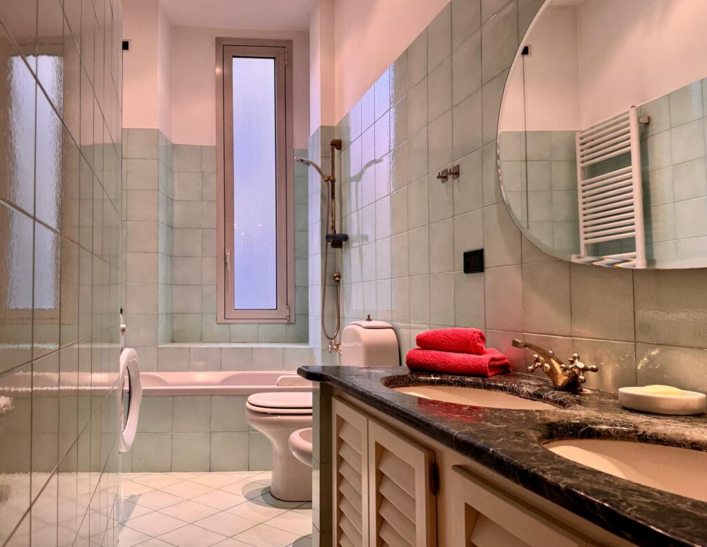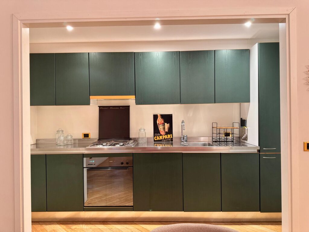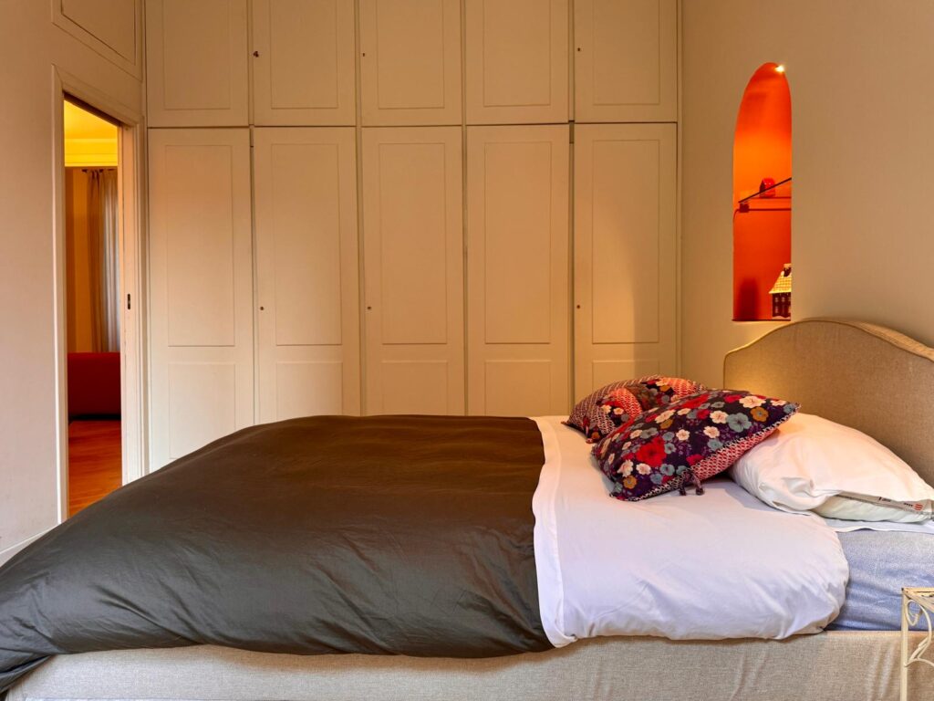 Si tratta di uno spazioso bilocale, eventualmente trasformabile e in trilocale, con doppio soggiorno con portafinestra affacciata sul ballatoio interno riservato, con cucina situata in una nicchia separata. Al disimpegno si affacciano la grande camera matrimoniale con armadio quattro stagioni e il bagno con finestra, vasca, doppio lavandino e lavatrice. C’è parquet in ogni stanza, aria condizionata e riscaldamento autonomo, cantina di proprietà. I soffitti alti consentono di avere una serie di utilissimi ripostigli in quota oltre a uno spazio guardaroba per i cappotti.