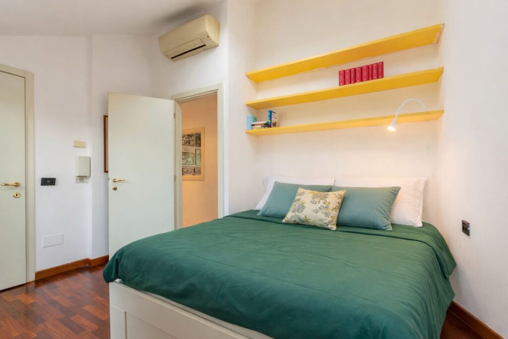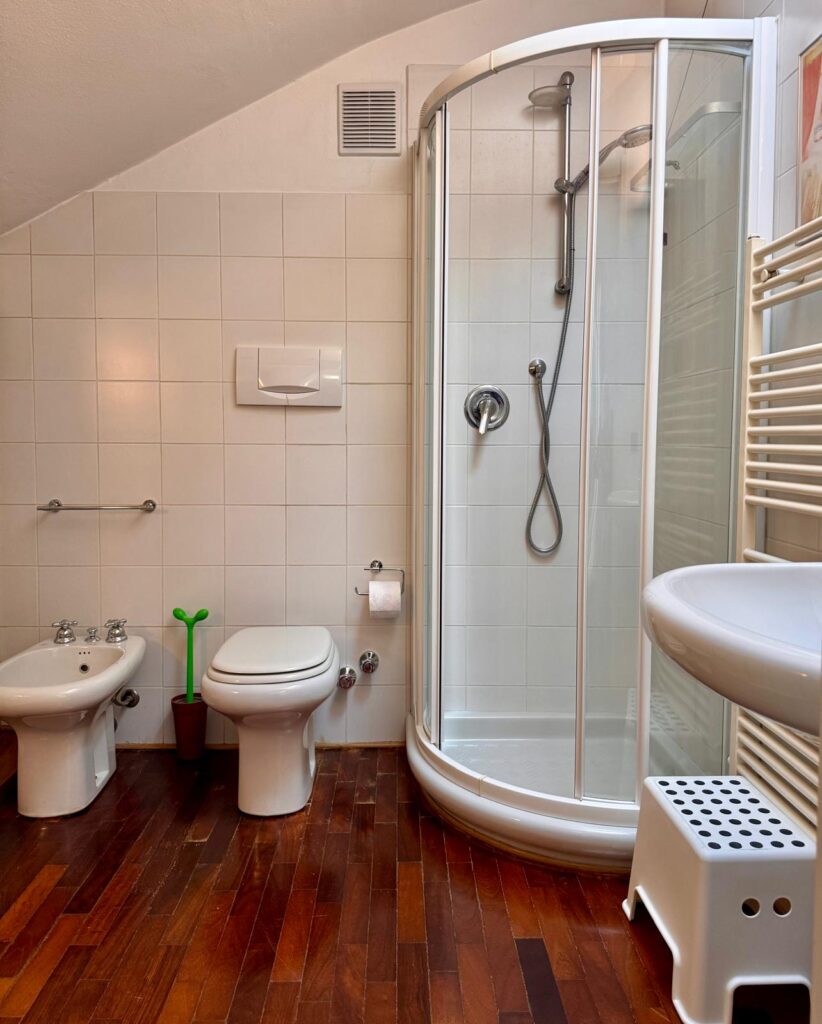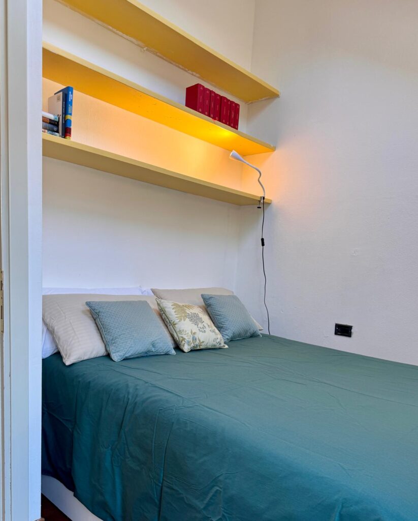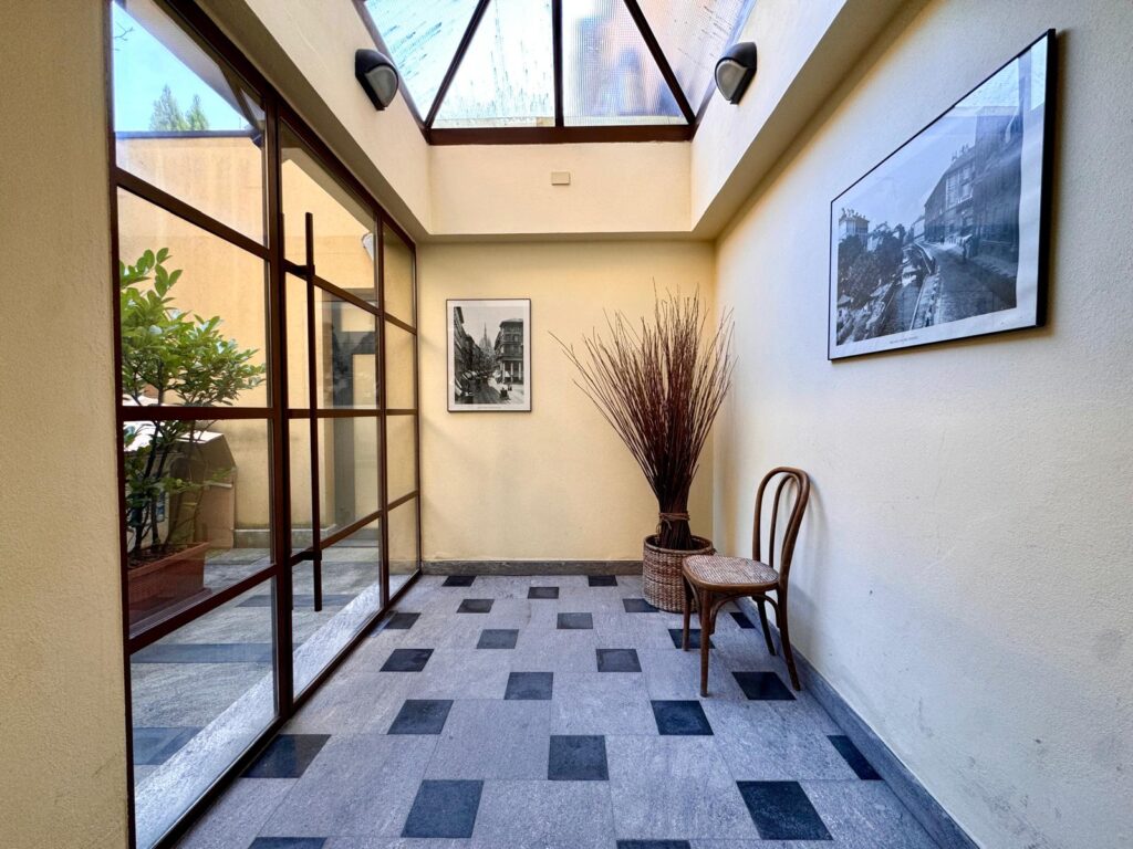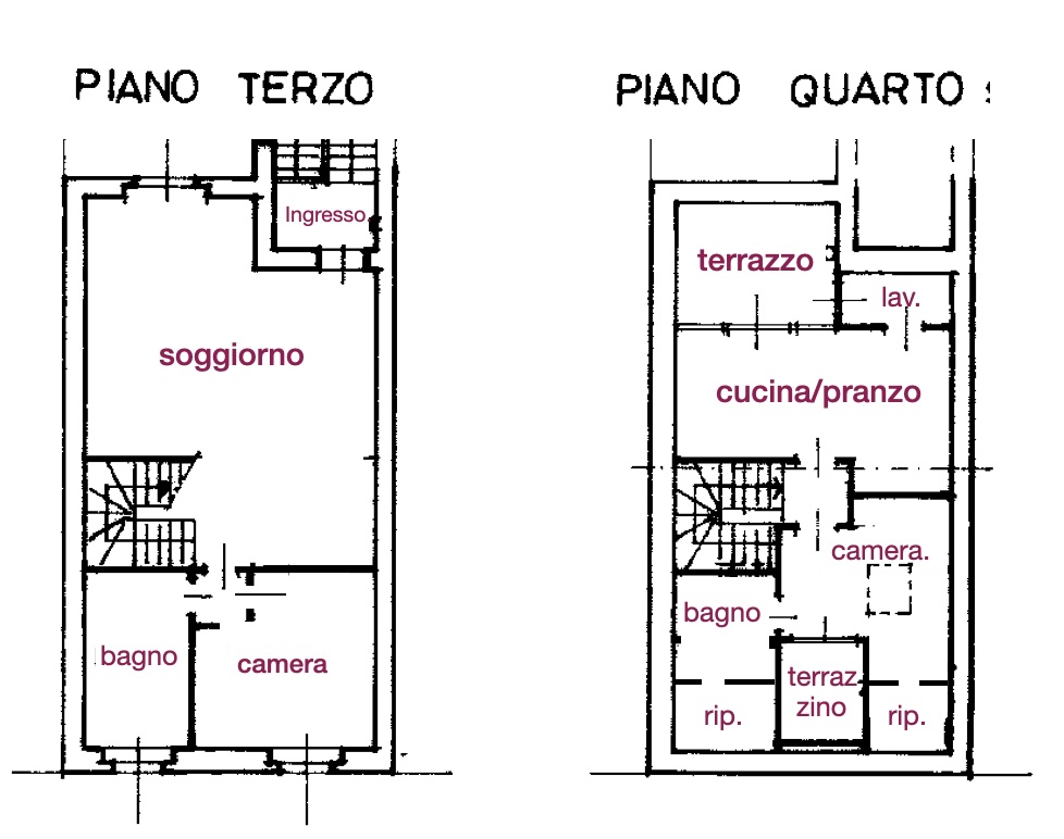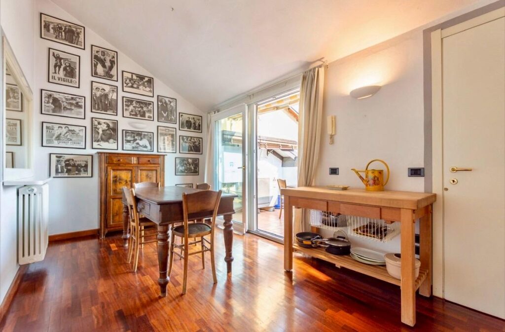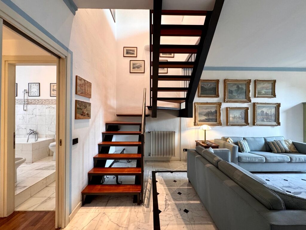 L’appartamento si trova al terzo e ultimo piano di una piccola palazzina dei primi del ‘900, misura 130 mq ed è disposto su due livelli.