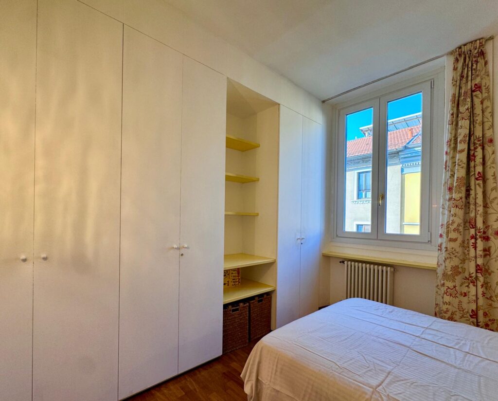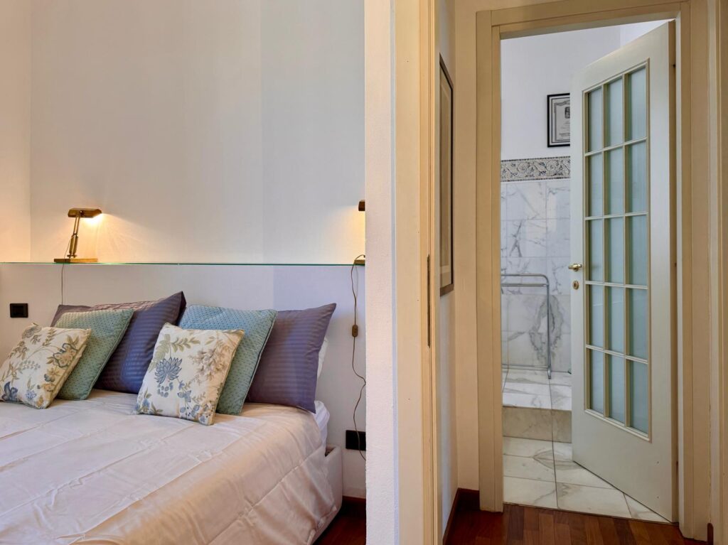 Dal disimpegno si accede alla seconda camera matrimoniale con terrazzino quadrato, cabina armadio e bagno en suite con doccia e ulteriore armadio a muro attrezzato.