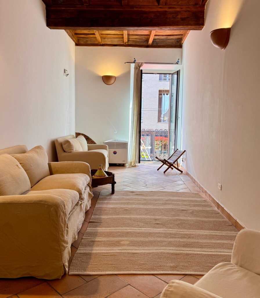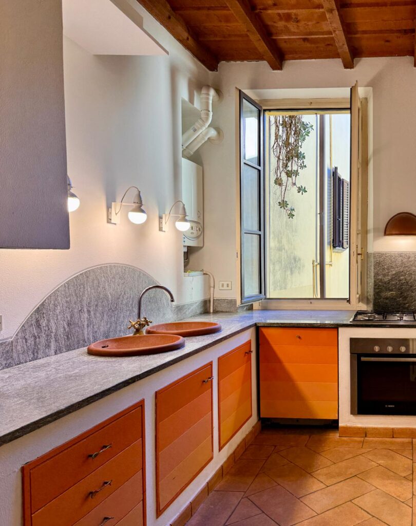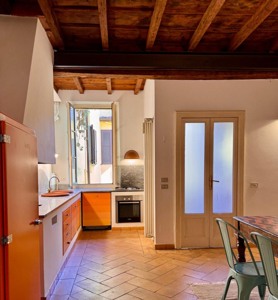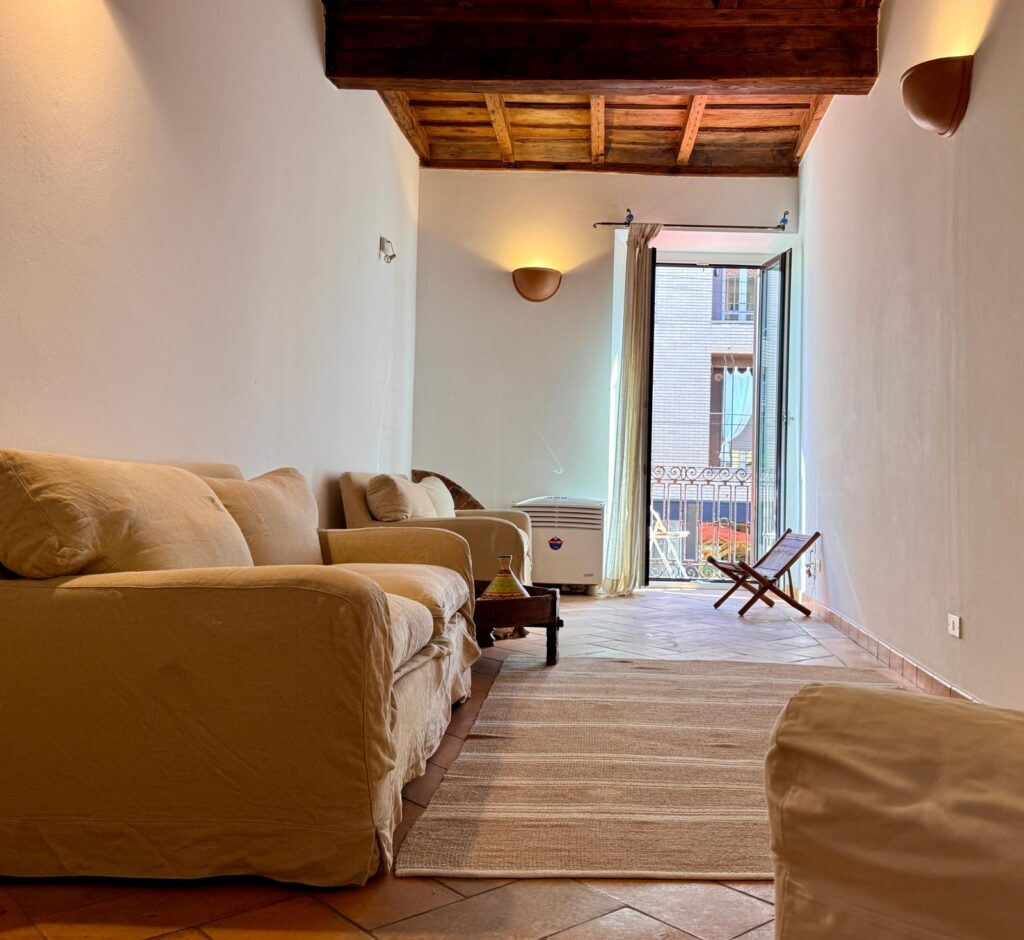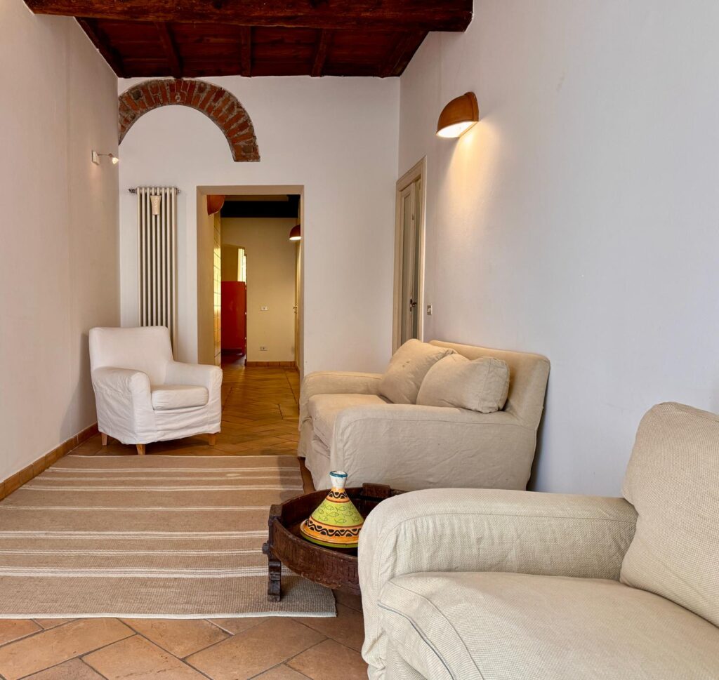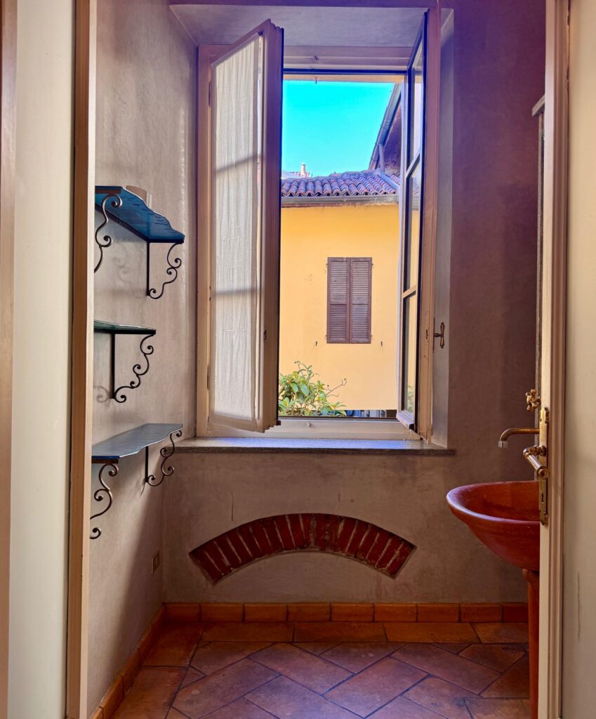 L’appartamento d’epoca misura 103 mq e si trova al primo piano senza ascensore ma risulta luminoso per la doppia esposizione est/ovest ed è l’ultimo di ballatoio.